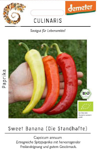 Sweet Banana ist eine ertragreiche, milde Spitzpaprika mit hervorragender Freilandeignung.
