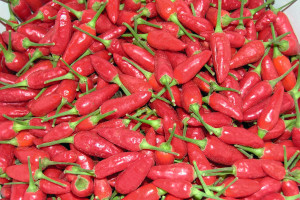 Die breit-buschige Prairie Fire ist regelrecht übersät mit kleinen, aufrecht stehenden, feurig scharfen Chilischoten, die von matt gelb nach dunkelrot abreifen. Sie eignet sich sowohl zum Rohverzehr, zum Kochen als auch zum Einlegen.