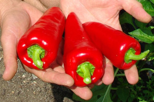 Der Paprika > Roter Augsburger < hat süße, spitze, leuchtend-rote Früchte.