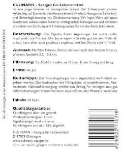 Der > Rote Augsburger < wurde in einer zweijährigen Sichtung und in Zusammenarbeit mit ARCHE NOAH aus über 50 Capsicum-Sorten auf ihre Eignung für die Kultivierung unter Low-Input-Bedingungen in Töpfen und im Freiland getestet.