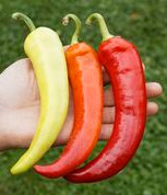 Der intensive Paprikageschmack ist angenehm frisch bis teilweise fruchtig. Die länglichen, bis zu 20 cm langen und 5 cm dicken Früchte, reifen von gelb nach rot ab und ähneln im gelben Zustand, auch aufgrund ihrer leichten Krümmung, Bananen.